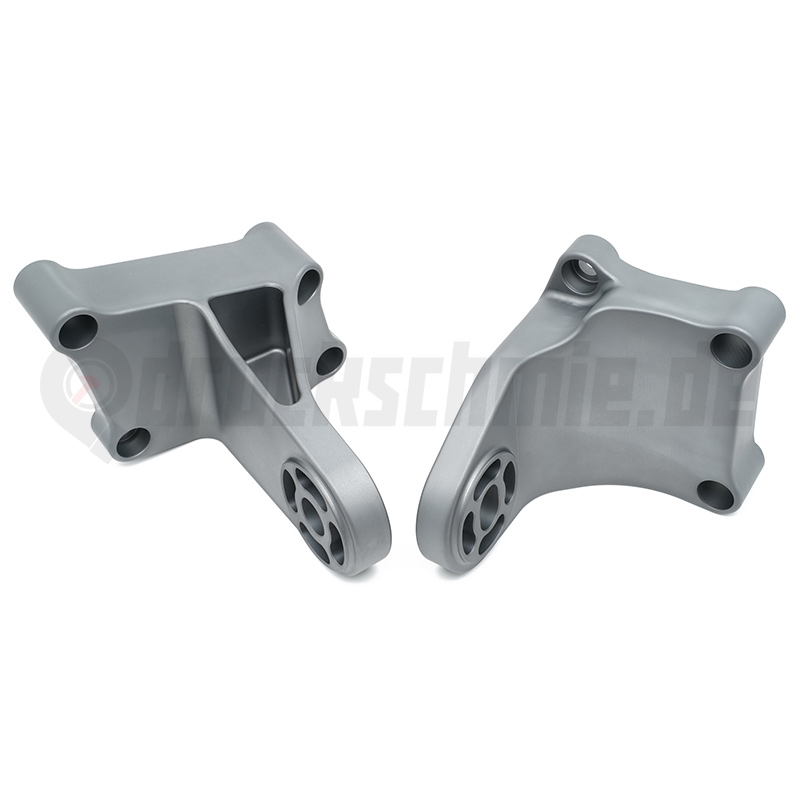 Die Halter sind CNC gefräst aus dem Vollen und bieten damit eine ideale Steifigkeit und Festigkeit. Um den bestmöglichen Korrosionsschutz und Optik zu erreichen, wurden diese zusätzlich galvanisch eloxiert.